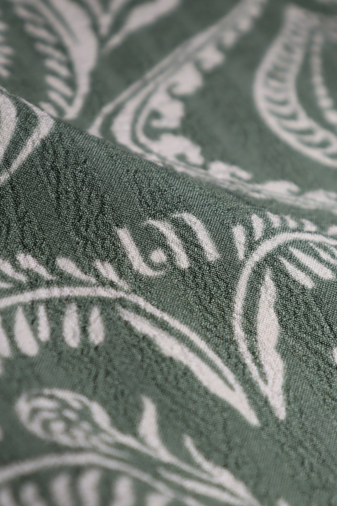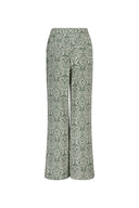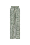 Trousers Elise are green trousers with print, made of a very comfortable fabric. The trousers have elastic in the waistband, which is adjustable by the drawstring. The long trousers are high waisted and straight in fit.