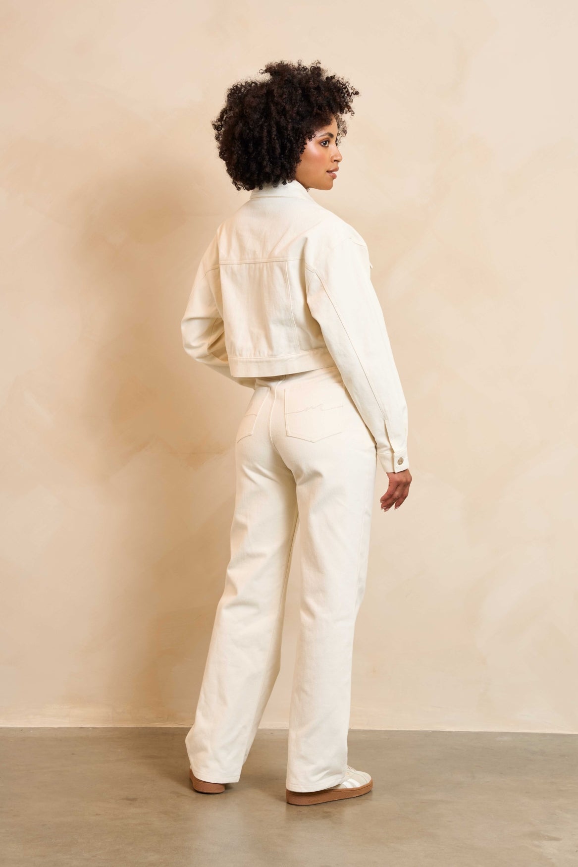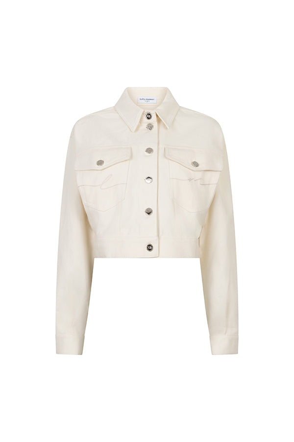 The Iselin jacket is an ecru jacket with a loose fit and dropped shoulders. The classic collar and chest pockets give it a rugged look. This denim piece can be worn effortlessly as a jacket or layered over your outfit.