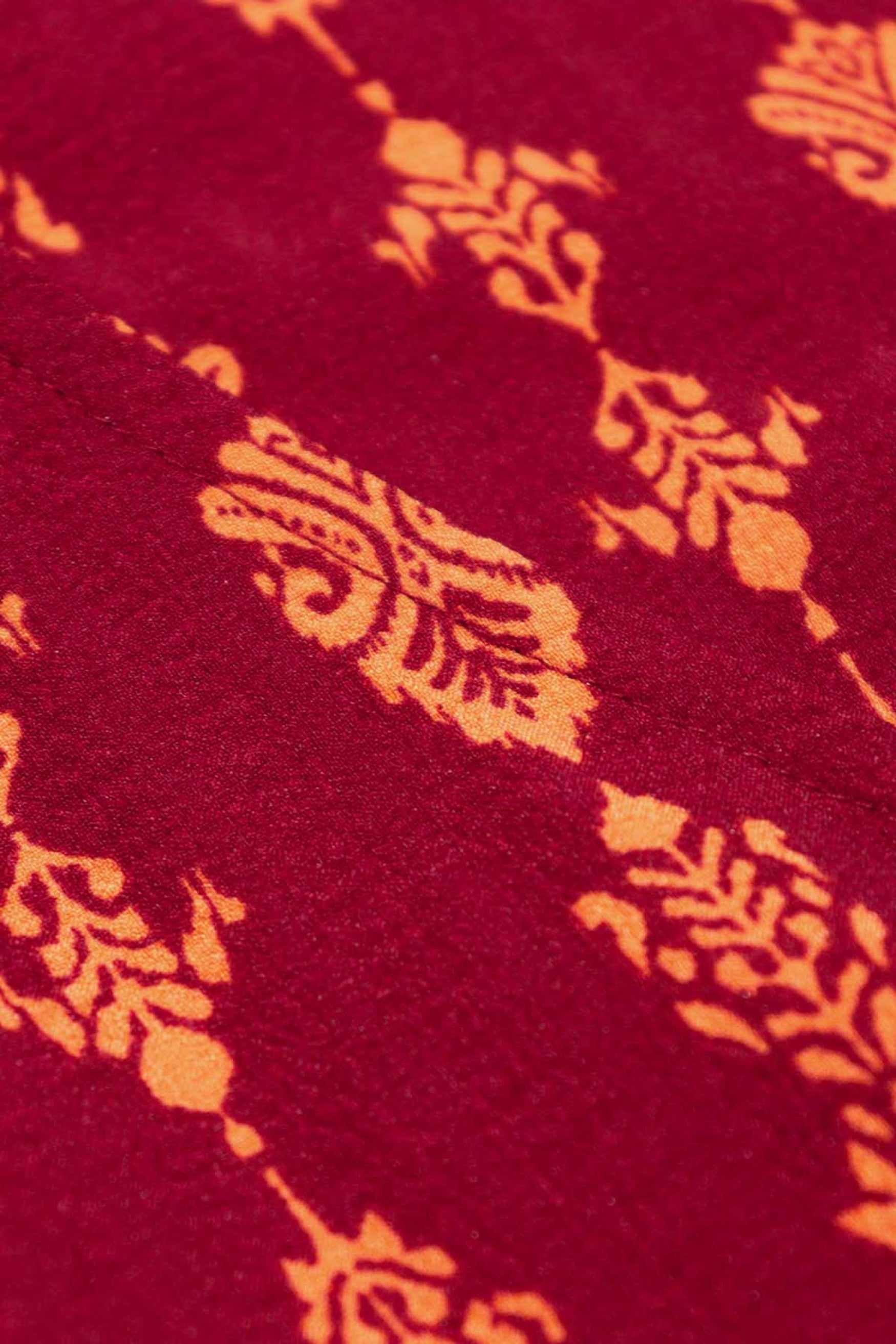 Dress Keyla is a red midi dress with a classic collar and a wrap detail at the waist. The dress can be tied on the left side and has elastic in the sleeve ends.