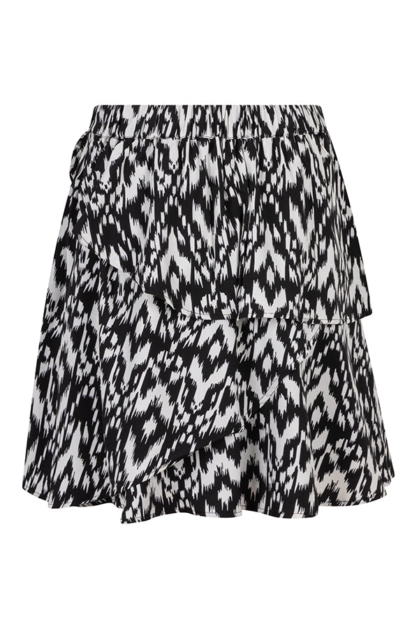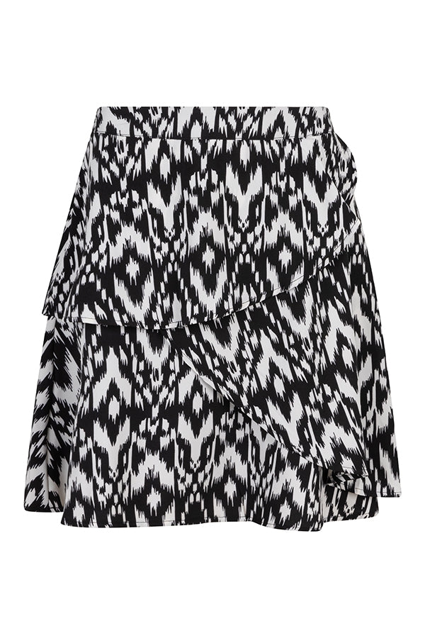 Skirt Ashlyn is a short skirt with an elasticated waist, a concealed zip on the side and three ruffle panels for a playful effect.