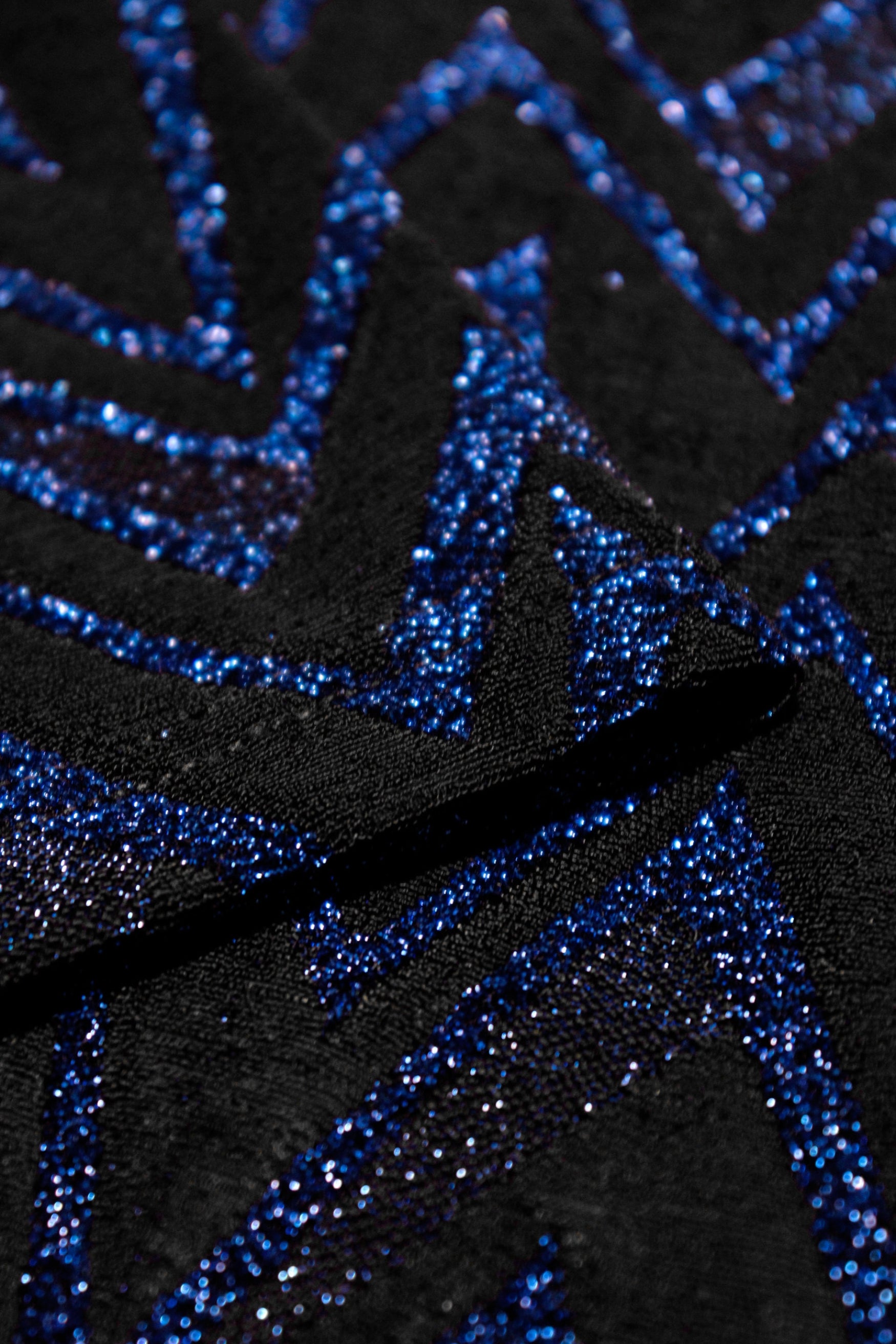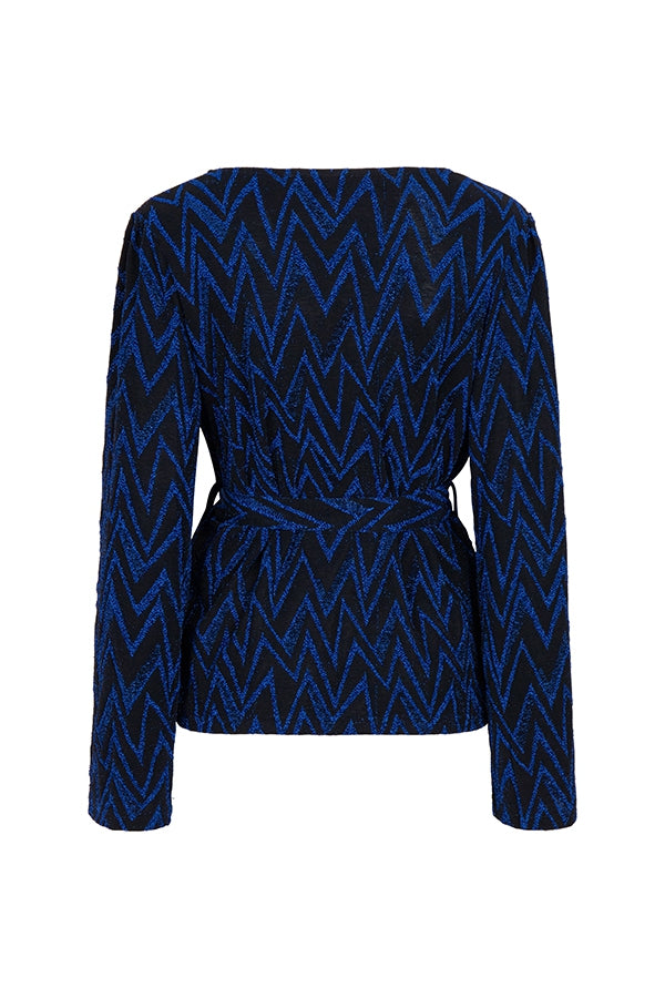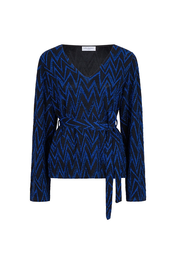 Top Harley is a loose blue top with V-neck and bell sleeves. The top with a zigzag lurex pattern contains a lot of stretch and has a removable belt.