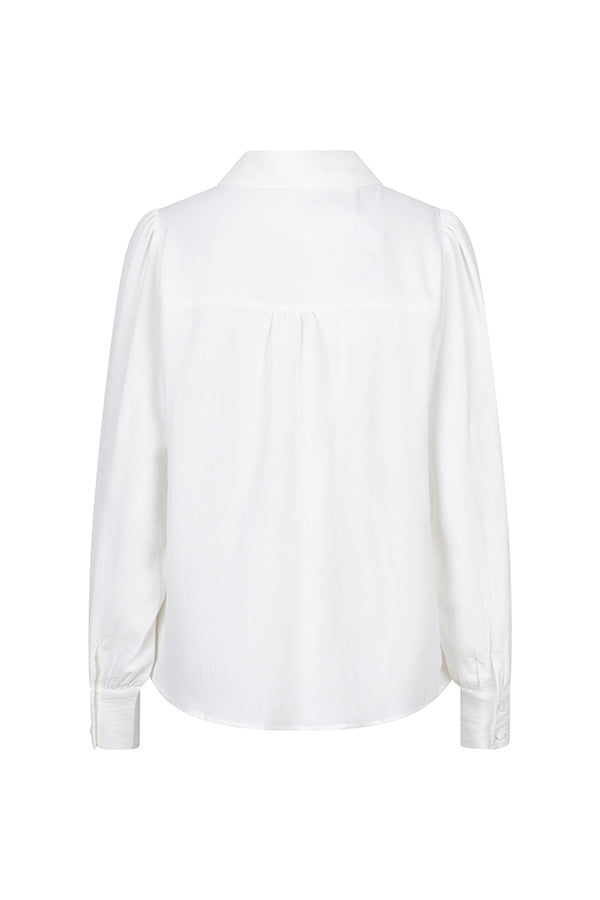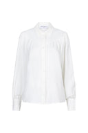 Blouse Ella est une blouse blanche classique avec col et détail en V sur la poitrine. Le chemisier est doté de boutons sur toute la longueur, y compris aux extrémités des manches. Le chemisier blanc a une coupe ample.