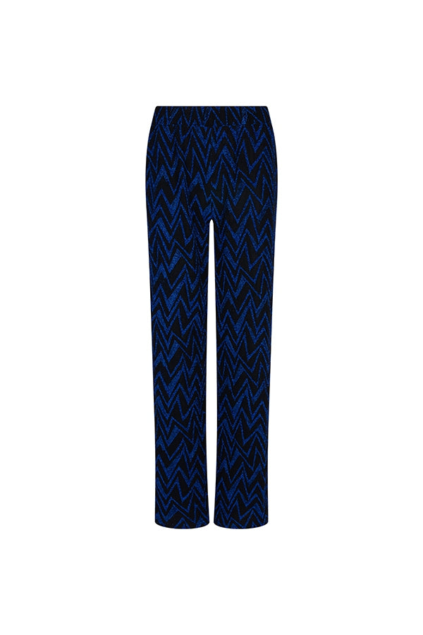 Le pantalon Chella est un pantalon droit avec une taille élastique. Le pantalon bleu est confectionné dans un tissu extensible. Portez le pantalon en ensemble coordonné avec le haut Harley.