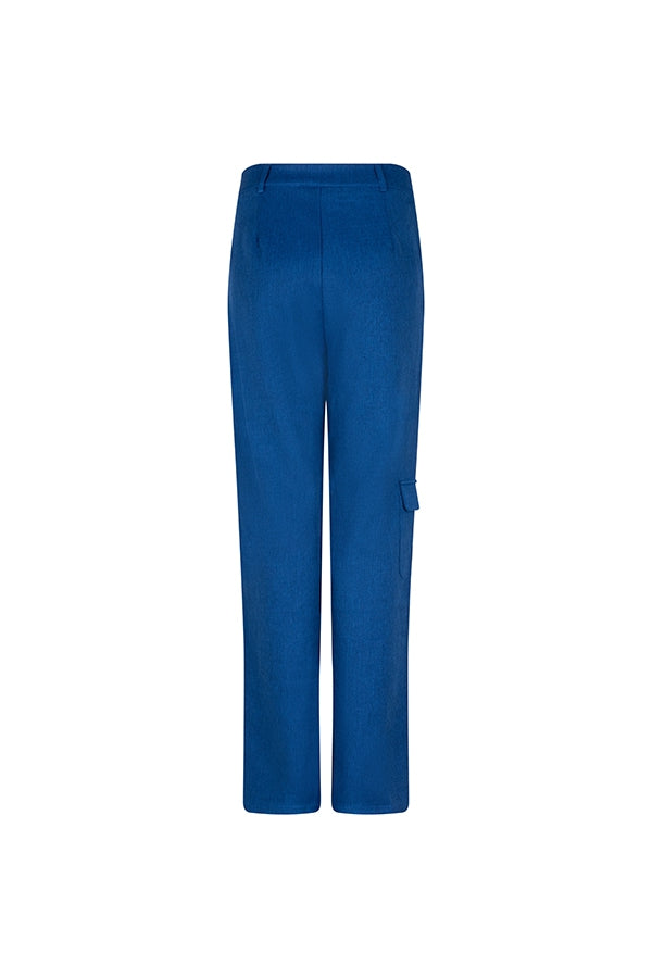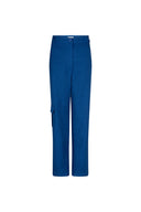 Le pantalon Deidra est un pantalon cargo bleu avec bouton et fermeture éclair, passants de ceinture et jambes droites. Le pantalon a un aspect lin, une poche au genou et des poches latérales.