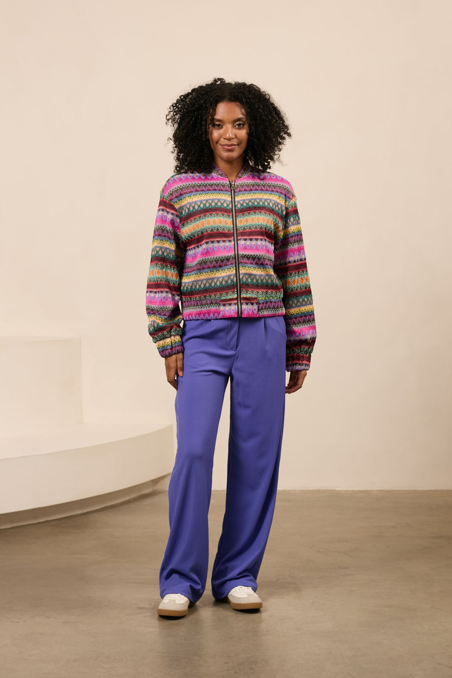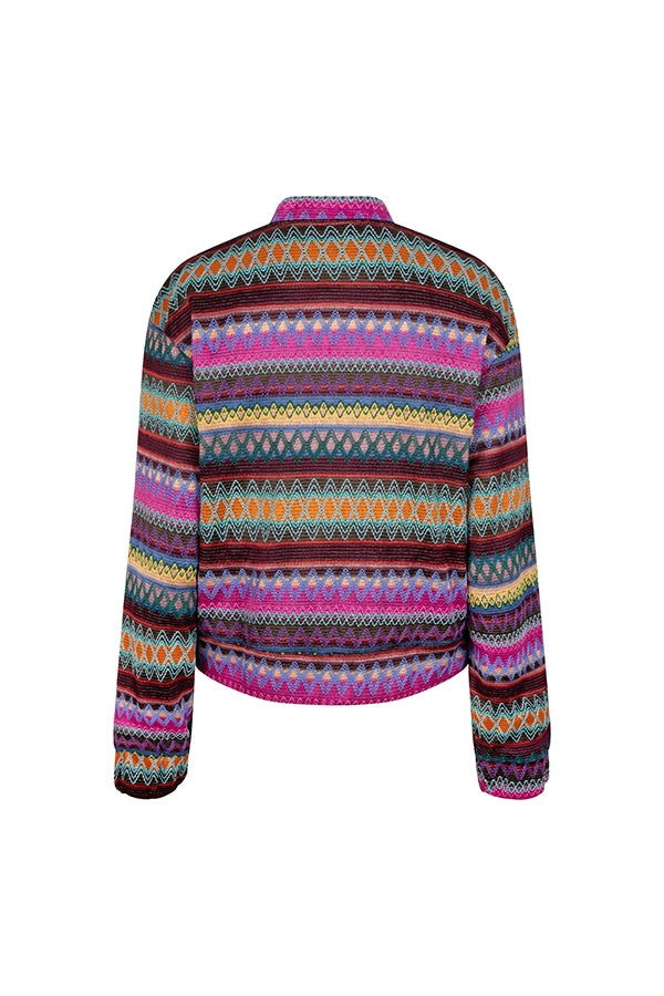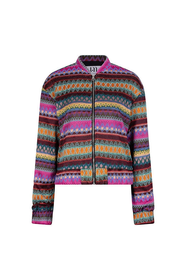 Jacket Plien est un bomber en tissu avec un motif dans le tissu. La veste a une fermeture éclair et des poches latérales.
