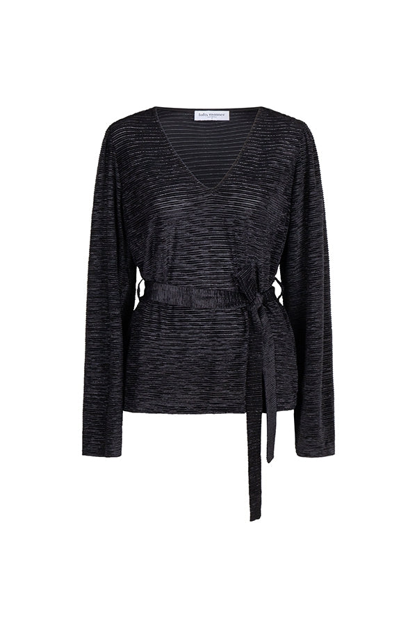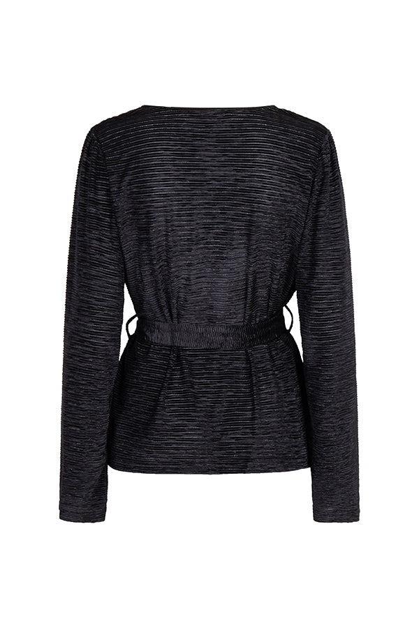 Top Harley est un haut noir ample avec un col en V et des manches cloche. Le haut en velours est très extensible et possède une ceinture amovible.