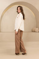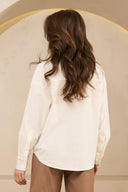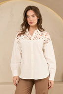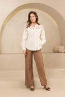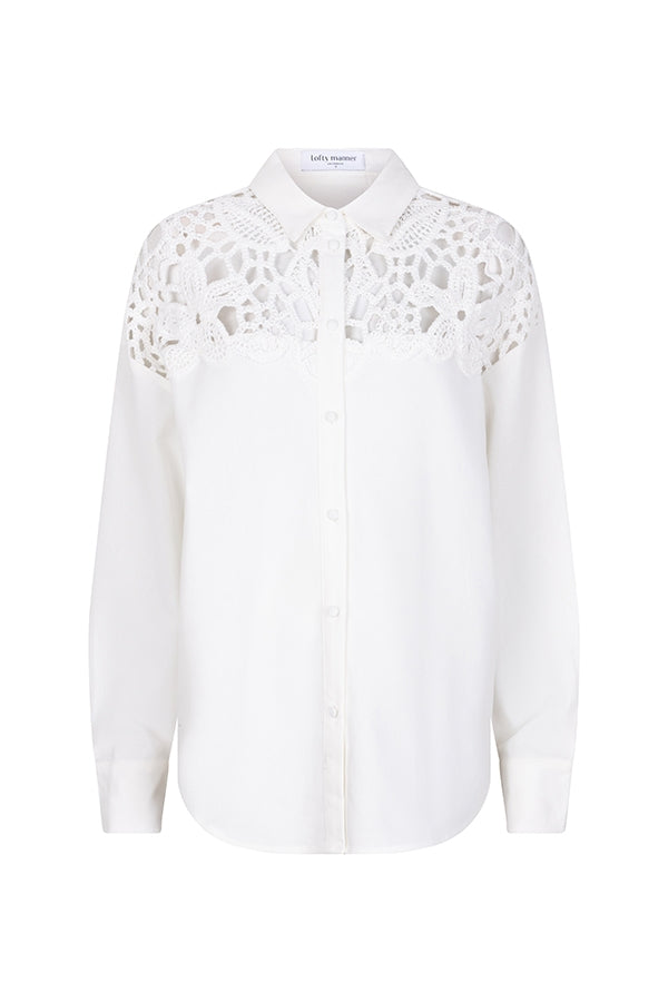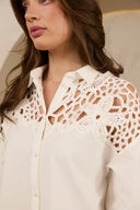 Blouse Anissa is een witte blouse met crochet details. De witte blouse heeft een klassieke kraag, knopen over de gehele lengte en is gemaakt van een mooie mix van linnen en katoen. De blouse is qua fit oversized.