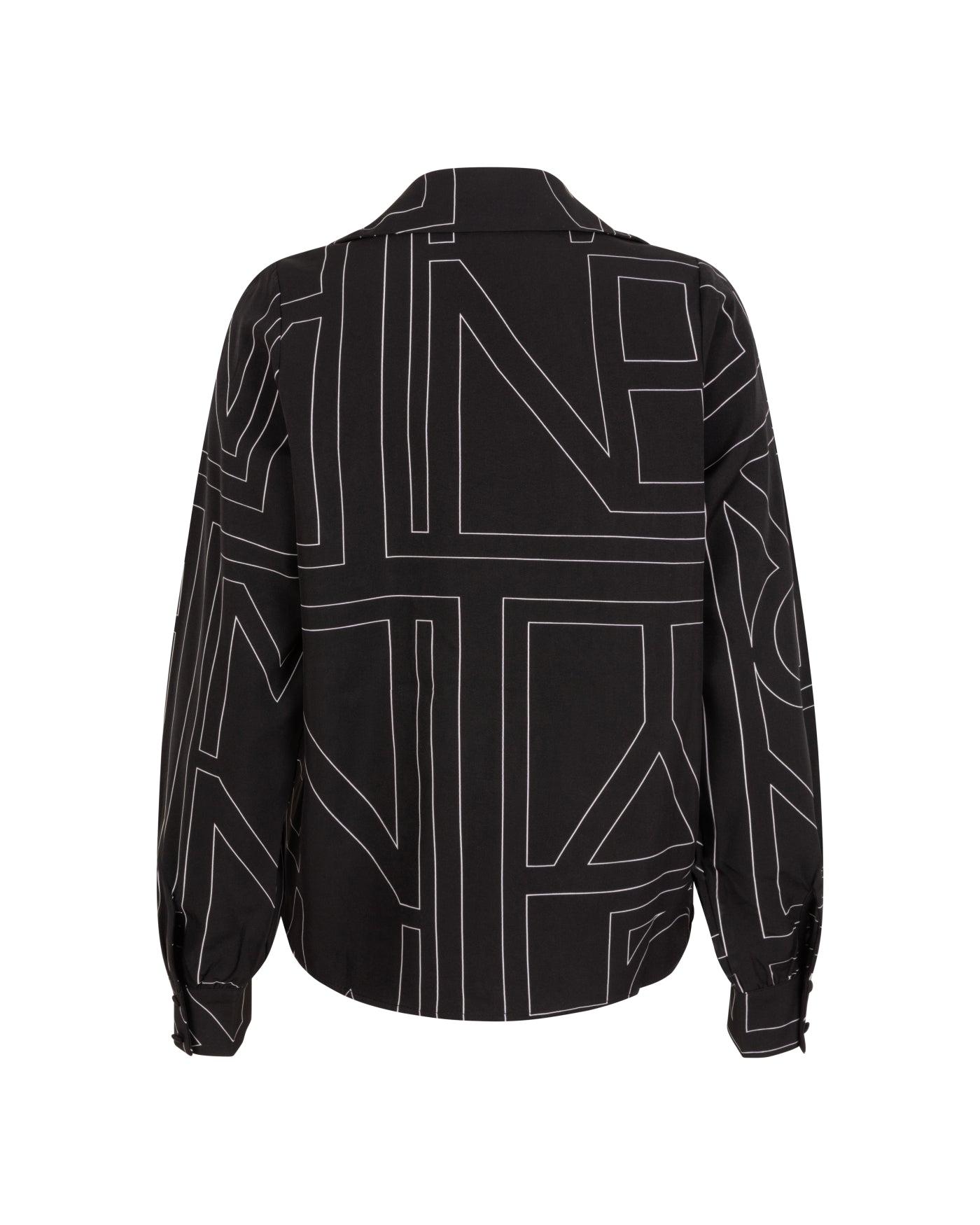Blouse Eve is een klassieke zwarte blouse met grafische print. De blouse met V-hals heeft knoopjes over de gehele lengte en knoopjes bij de mouwuiteinden. De zwarte blouse is qua pasvorm losvallend.
