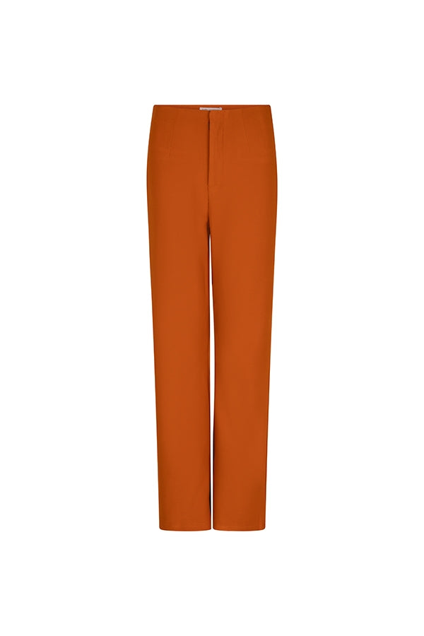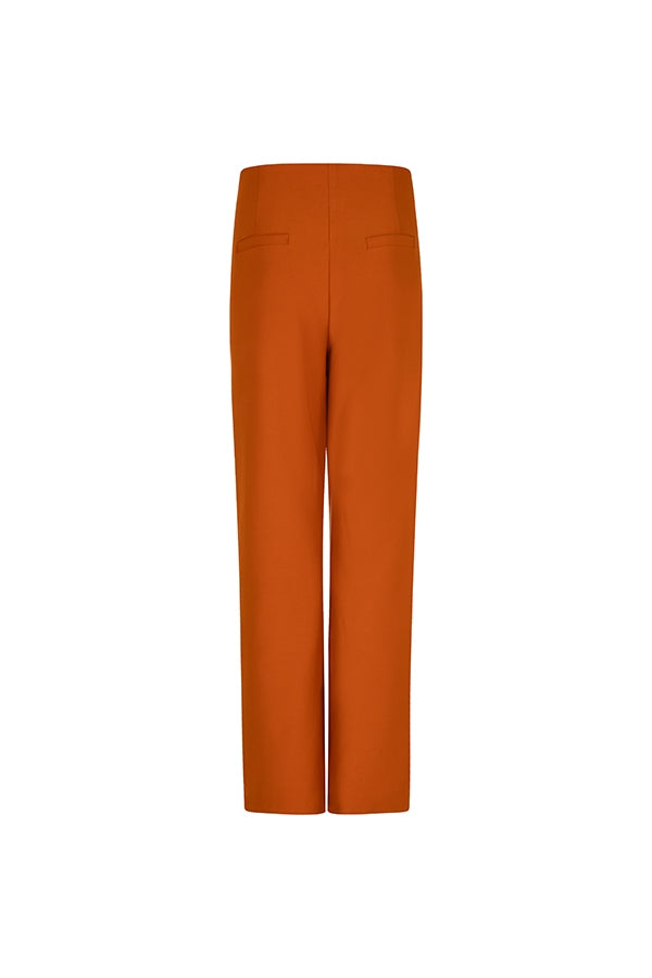 Broek Hailey is een comfortabele pantalon met rechte pijpen en een hook and eye sluiting. De oranjekleurige broek heeft sierzakken aan de achterkant en bevat veel stretch.