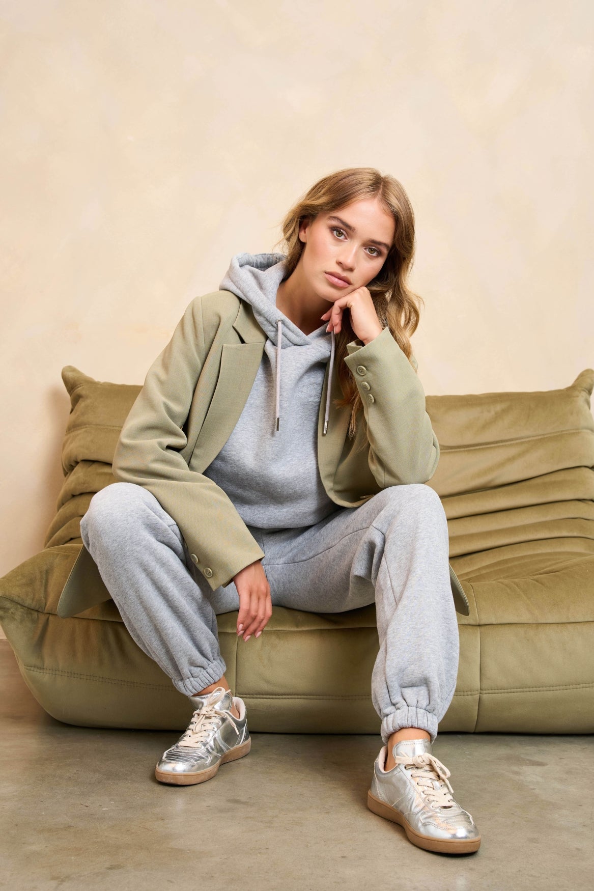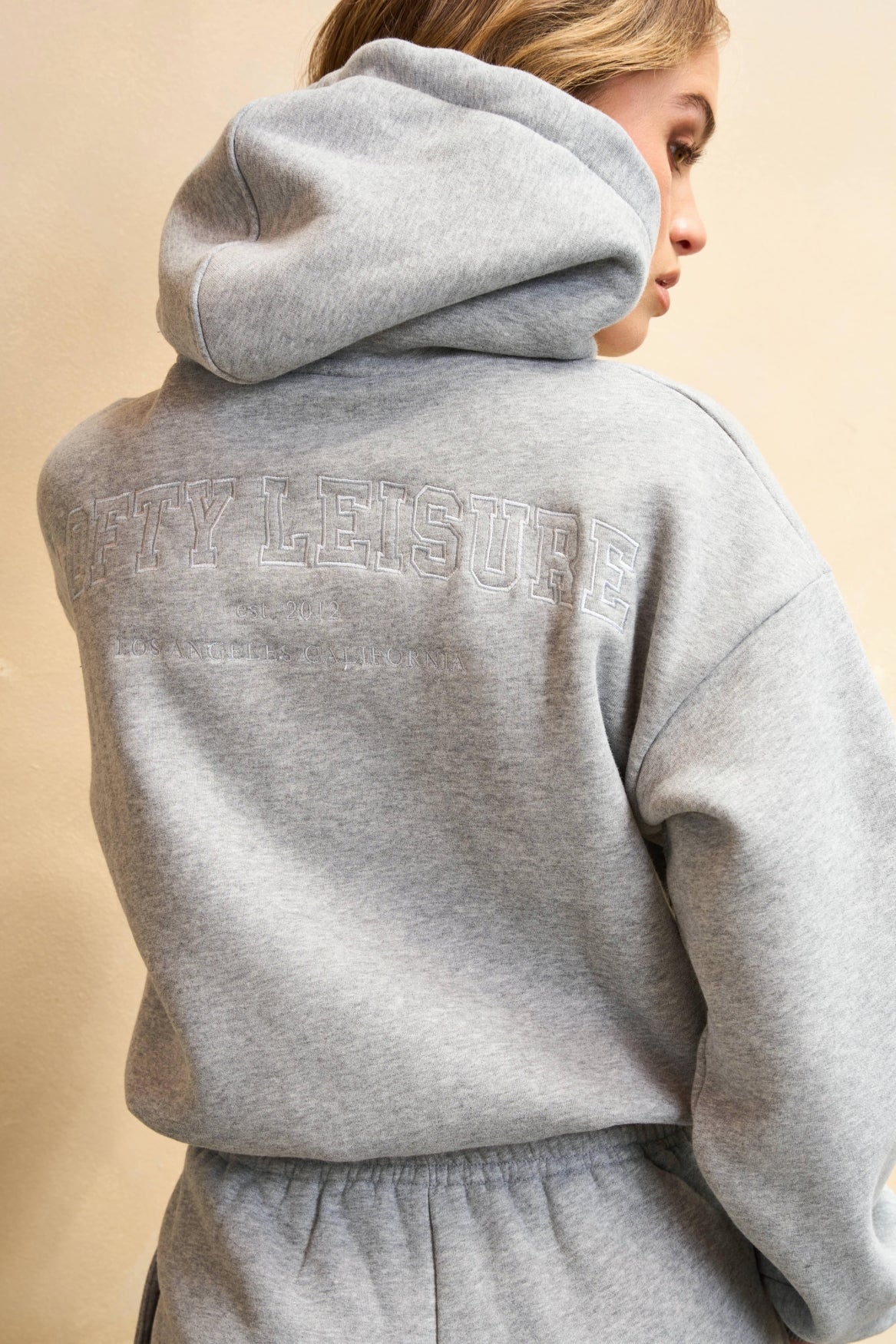 Hoodie Harly is een lichtgrijze hoodie met capuchon. De hoodie heeft trekkoorden bij de capuchon en een grafische tekst op zowel de voor- als achterkant en een buidelzak. De grijze trui is gemaakt van een comfortabele sweaterstof en is qua pasvorm losvallend.