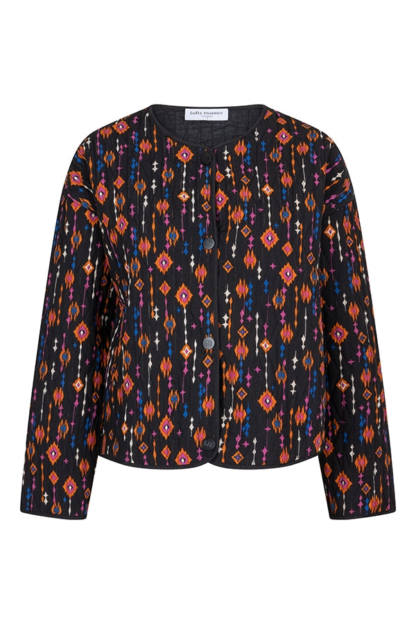 Jacket Mae is een gewatteerd jasje met een ronde hals en knoopjes van boven naar beneden. Het gekleurde jasje heeft een rechtvallende fit.