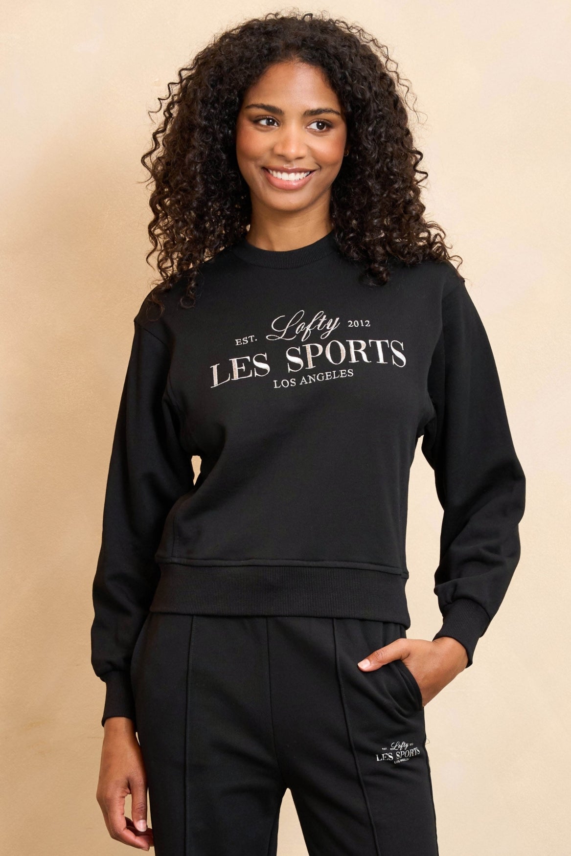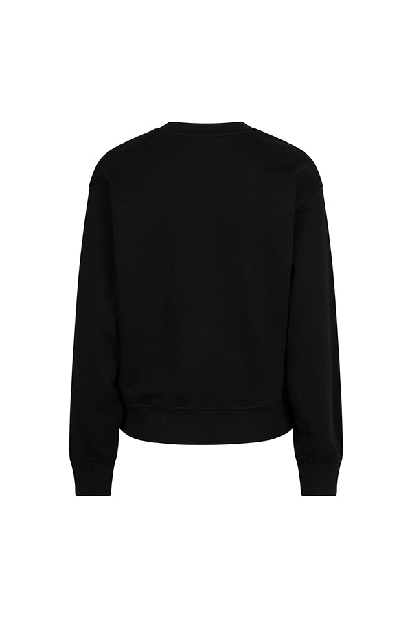 Sweater Thersi is een zwarte sweater met grafische tekst op de voorkant. De sweater heeft een ronde hals en is gemaakt van een comfortabele sweaterstof. De zwarte trui is qua pasvorm rechtvallend.