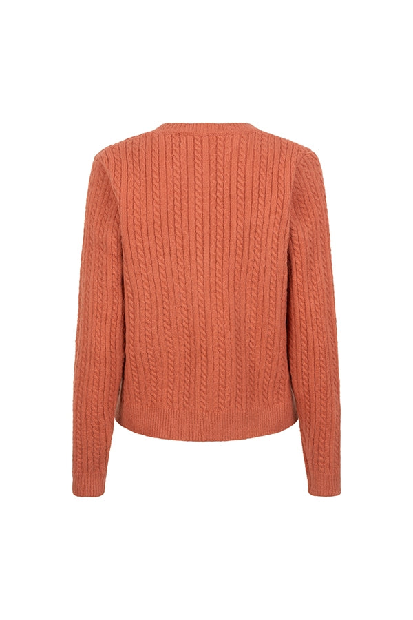 Vest Niva is een roze gebreid vest met structuur in de stof. Het vest heeft een hoge ronde hals en bevat veel stretch. Het roze vest is qua pasvorm losvallend.